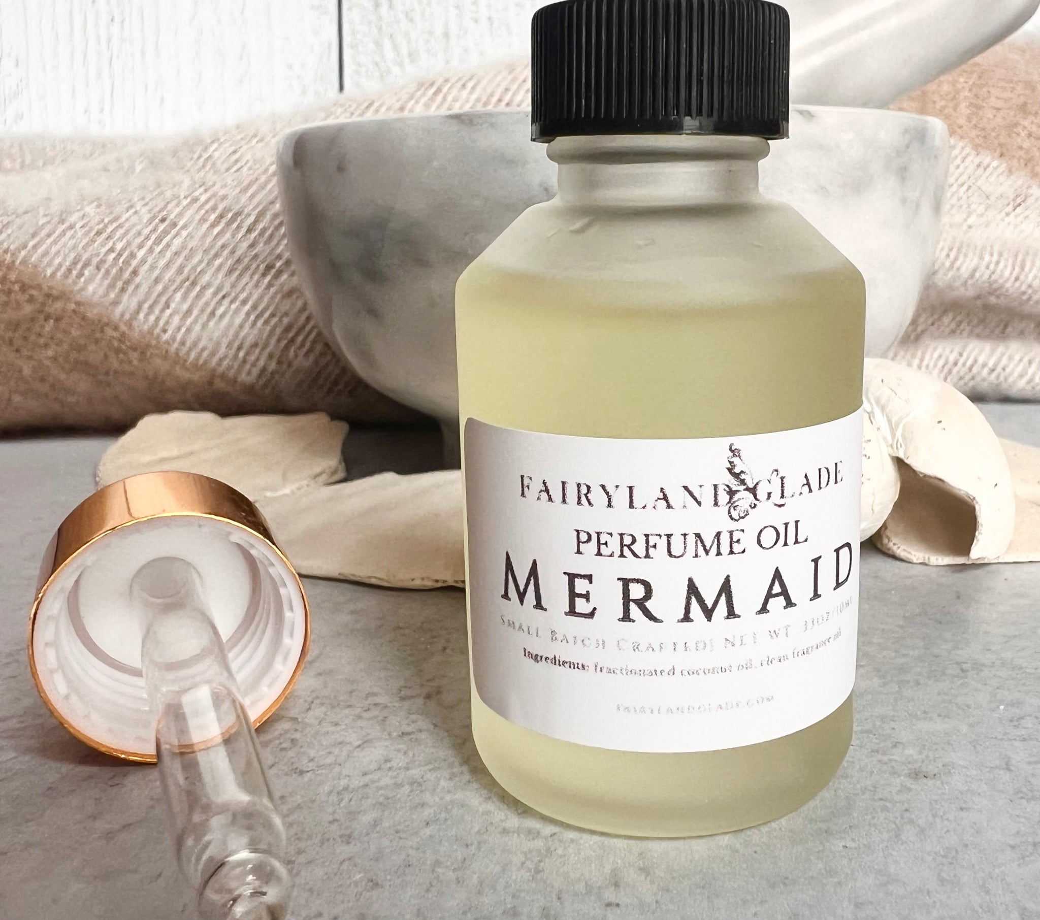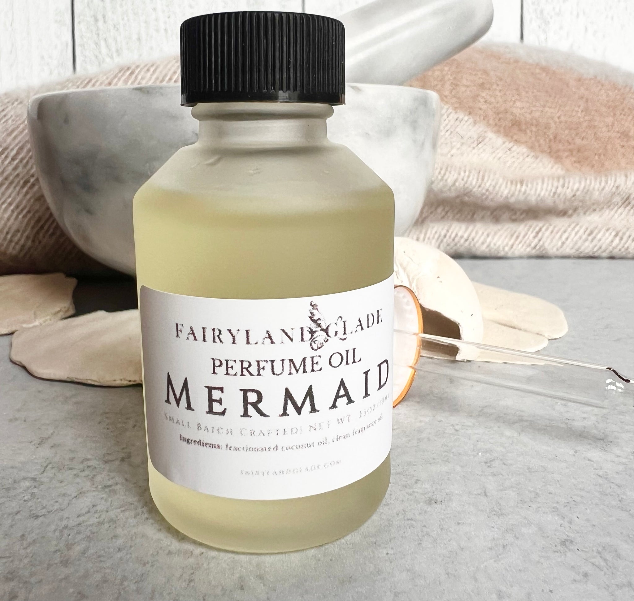 Experience a scent journey with Mermaid Perfume. Made with a simple base of fractionated coconut oil, our phthalate and paraben free fragrance will lift your spirits and leave you feeling refreshed. And with its convenient dropper bottle, it's a pick-me-up you can take with you anywhere.