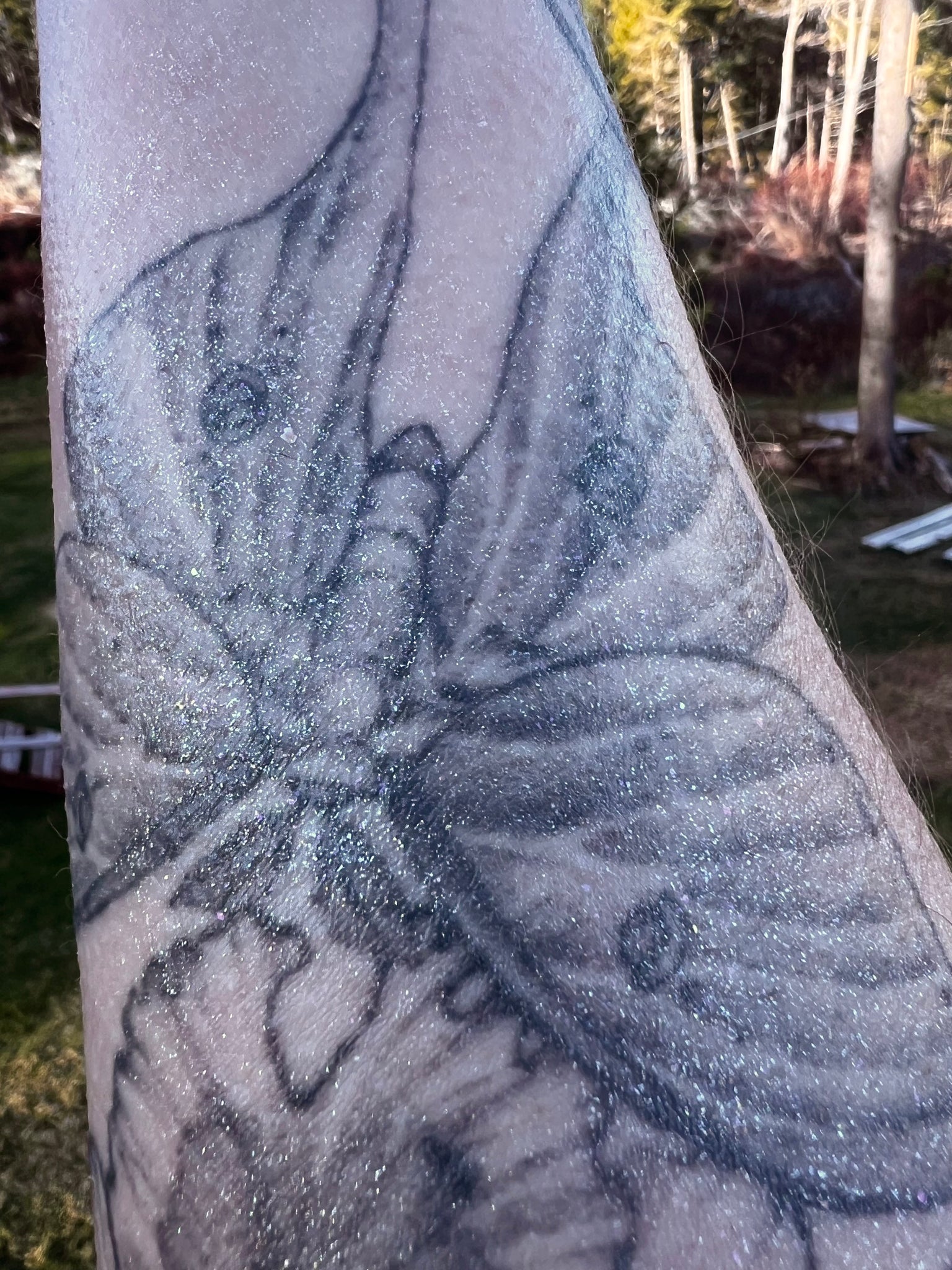 Full ingredients: apricot kernel oil, meadowfoam seed oil, olive wax, cetyl alcohol (coconut derived), mica, phthalate free fragrance, silica microspheres, vitamin E oil, bioglitter